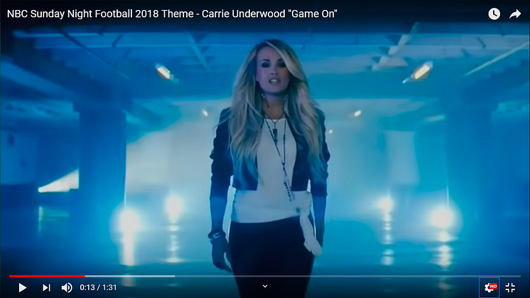 Underwood has been singing the opening theme for NBC’s Sunday Night Football, a weekly television broadcast of National Football League (NFL) games, every year since 2013.