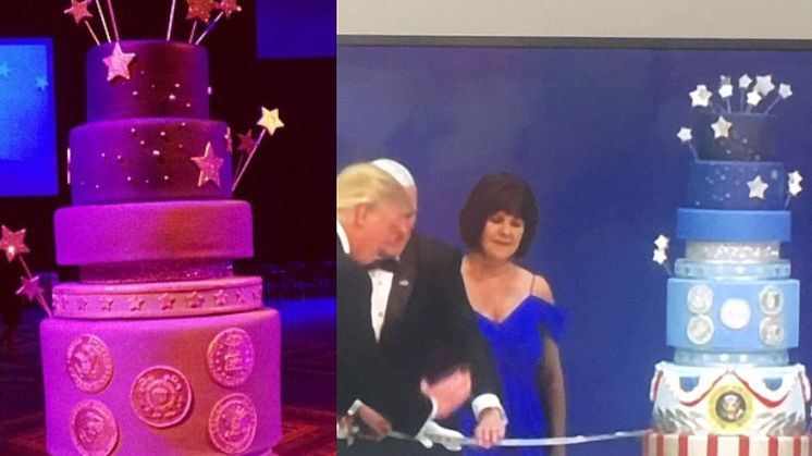 When images of President Trump cutting into the nine-tier cake were broadcast on the night of his inauguration, Goldman could not help but notice the cake looked almost exactly like the one he had designed and made for the inauguration of Barack Obama four years ago.